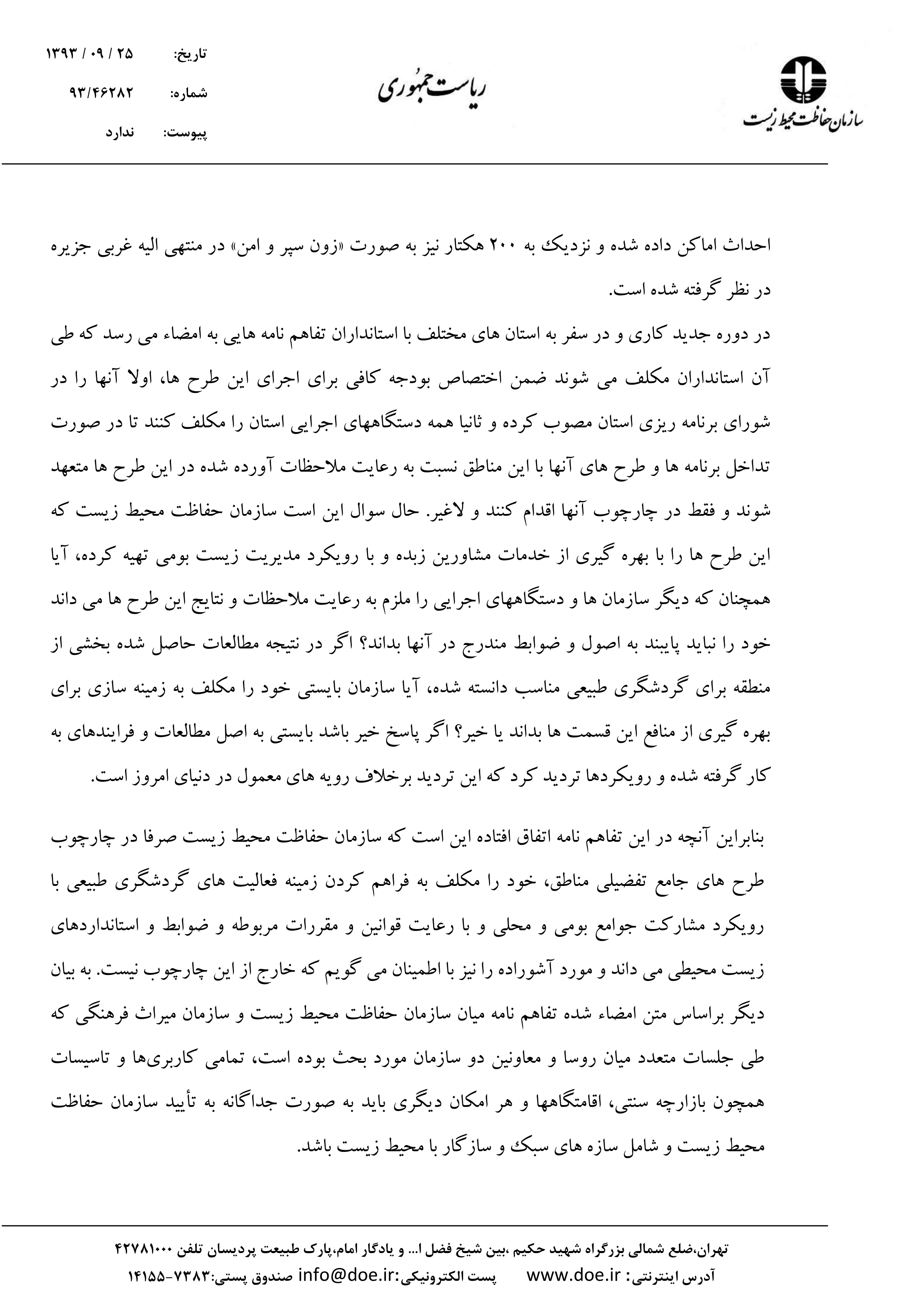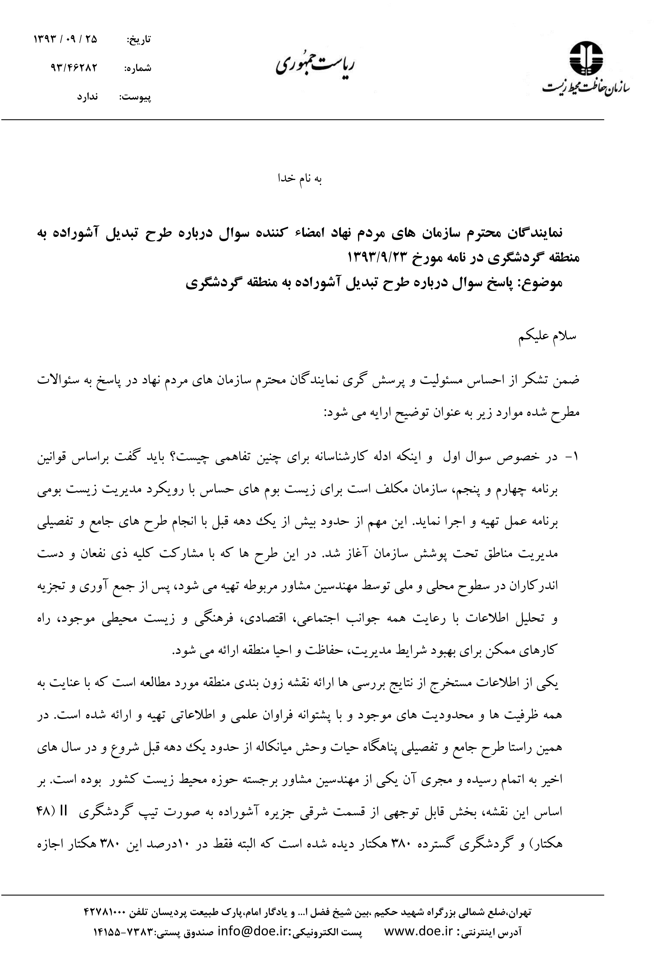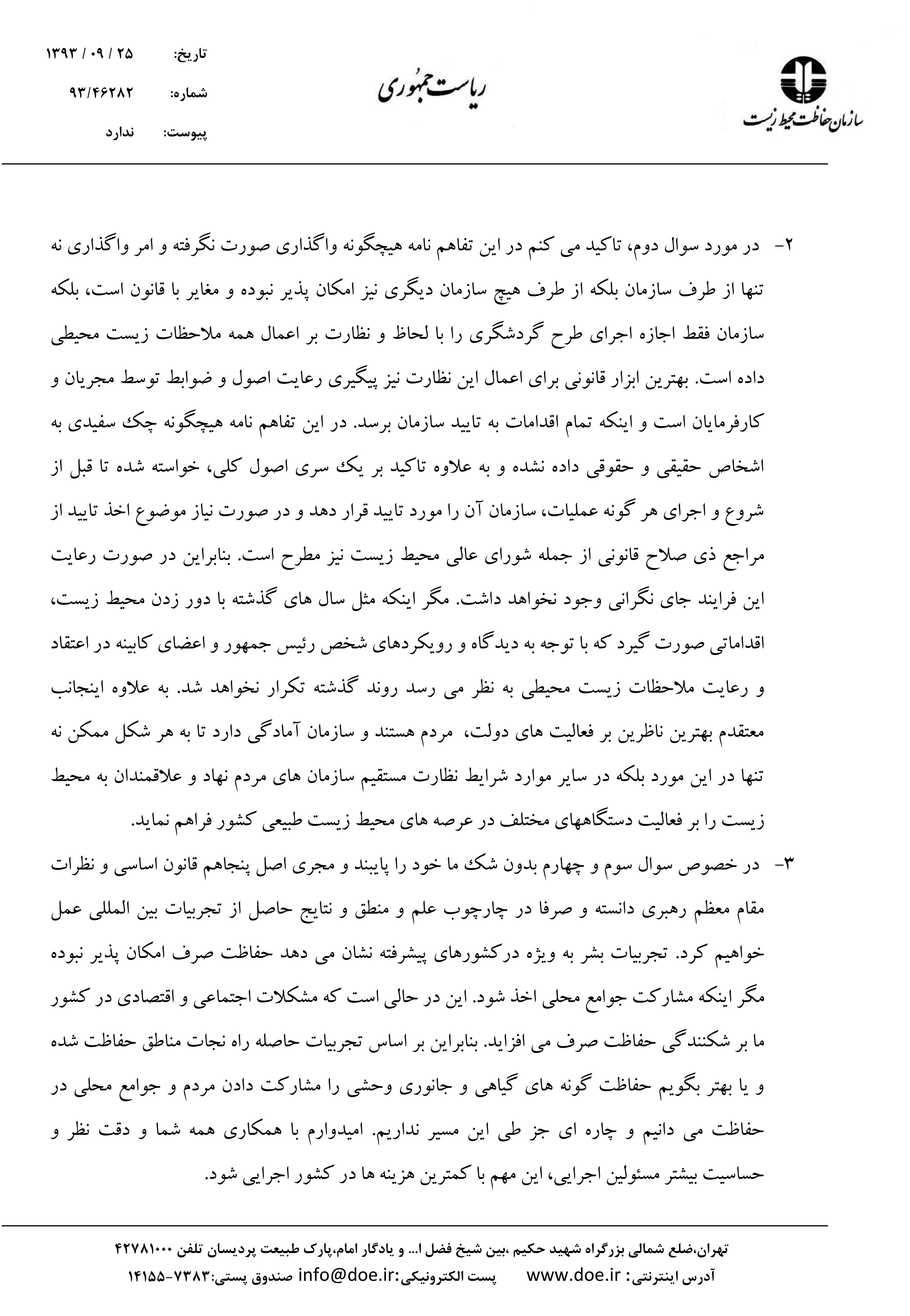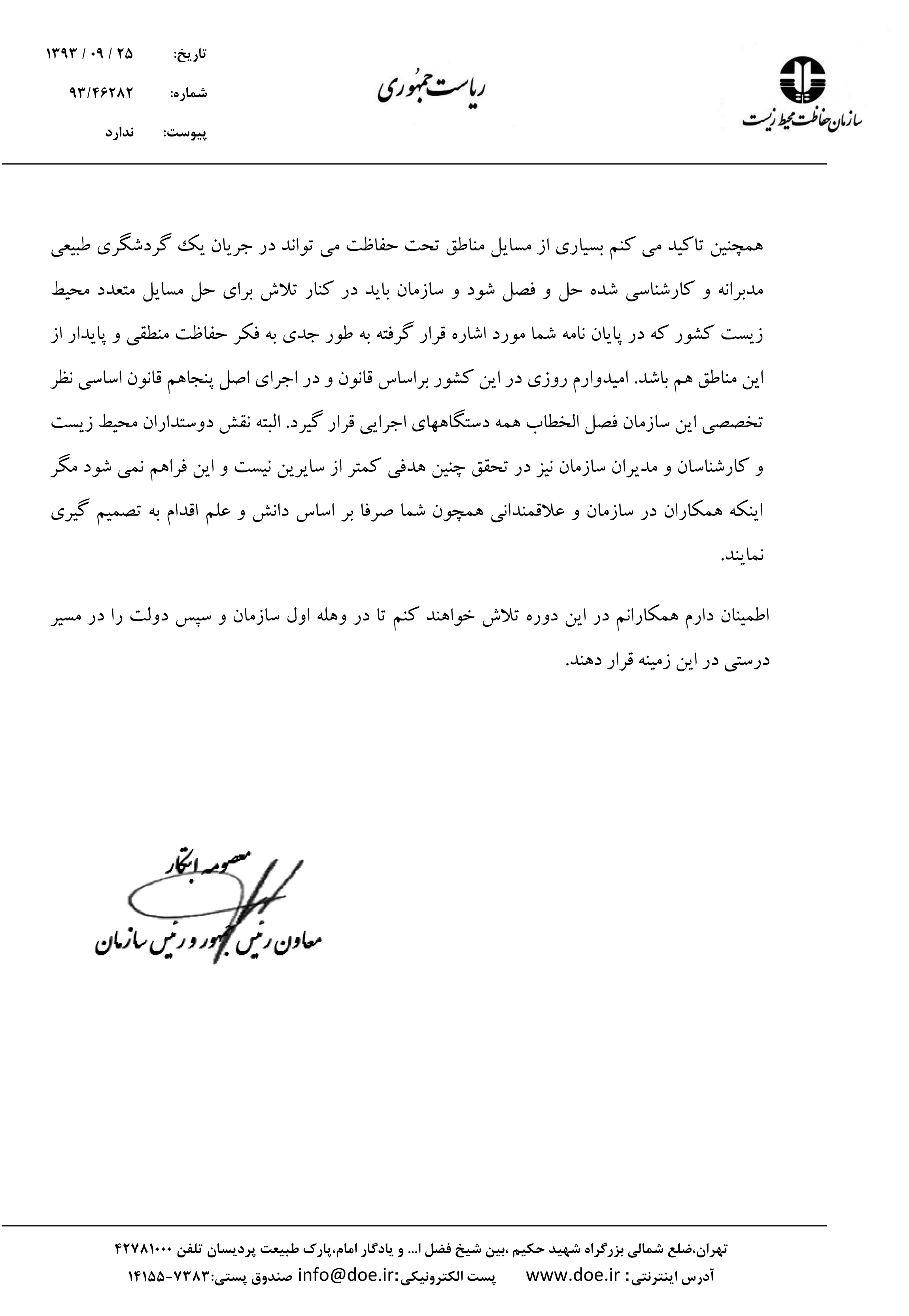 متن پاسخ رییس سازمان حفاظت محیط زیست بدین شرح است: